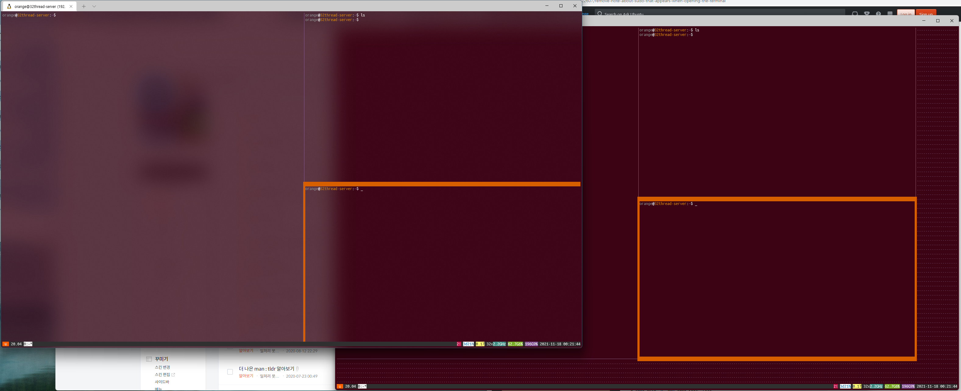 이게 정말 물건이다. 뵤부나 TMUX가 없이 리눅스를 사용하게 된다면 아마 터미널 을 오가느라 터미널 창을 여러개를 띄워서 화면을 어지럽힐거다